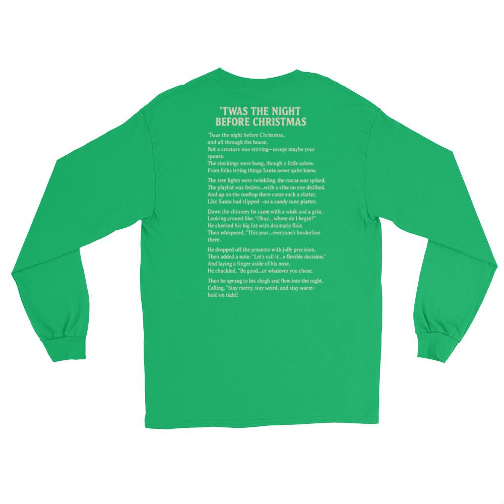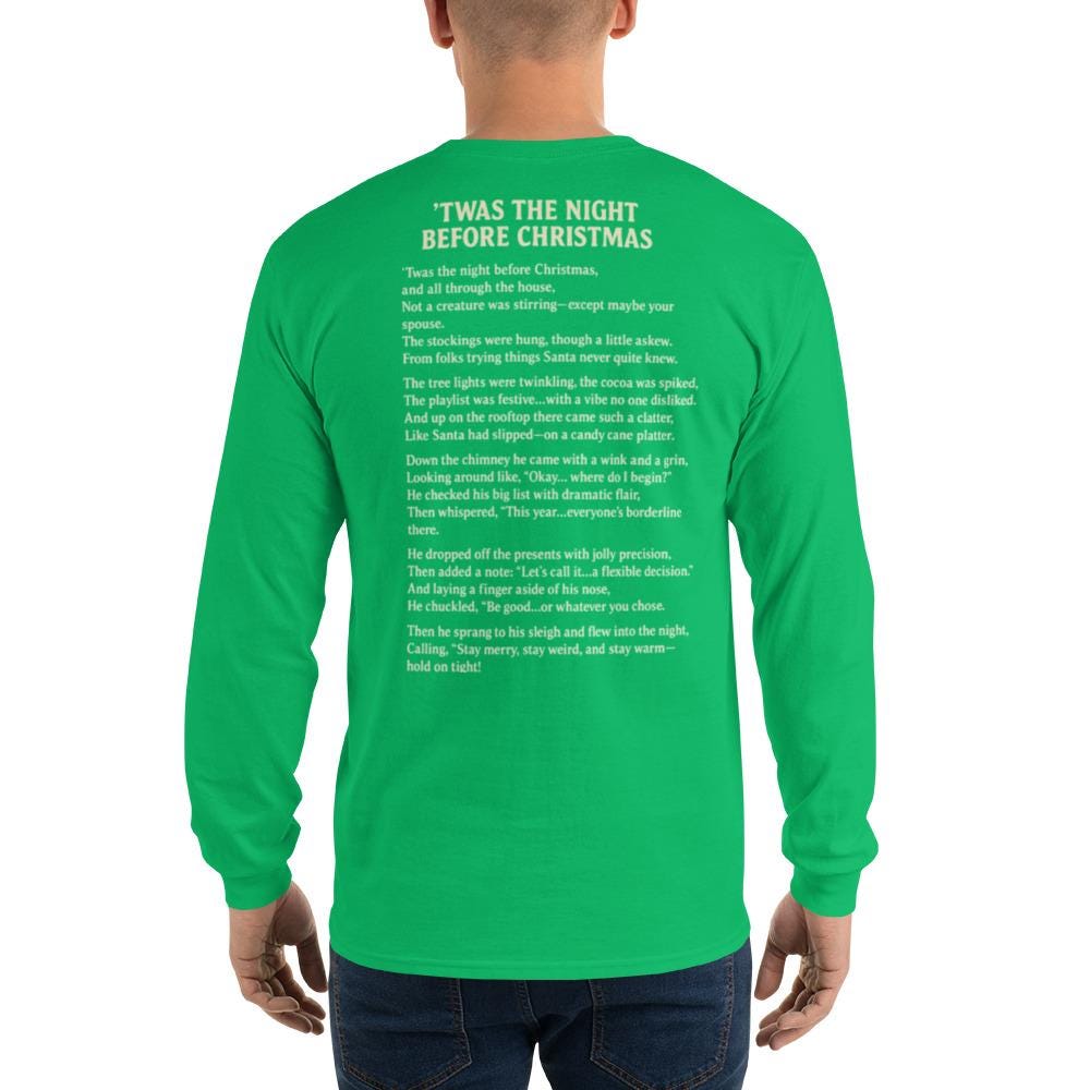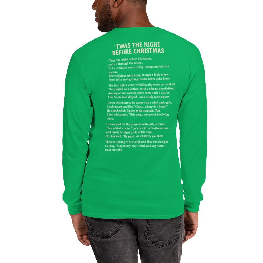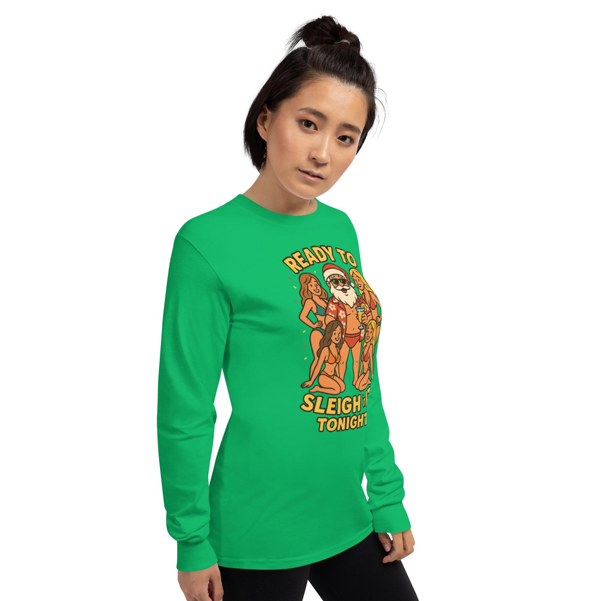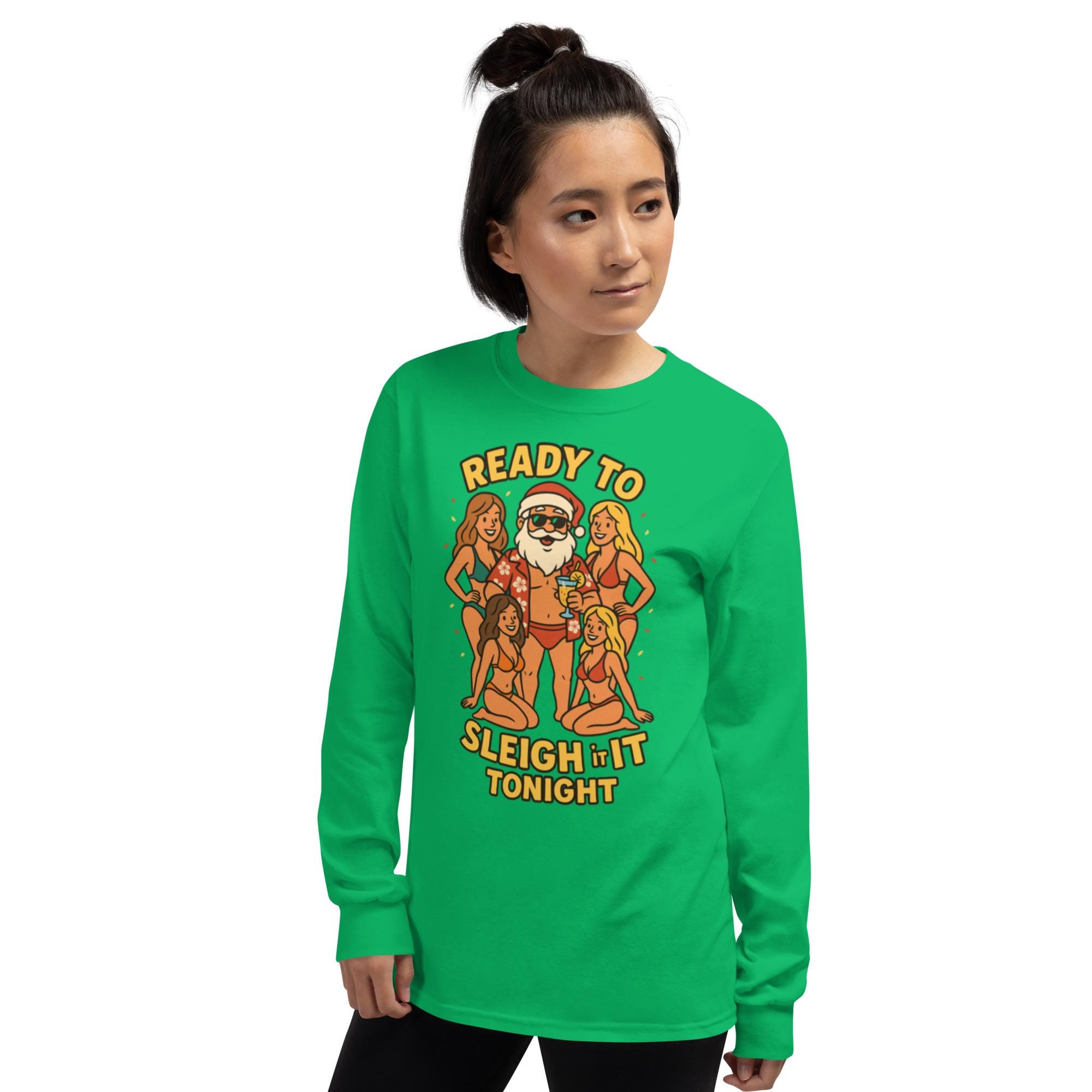 Made from 100% cotton, this long sleeve shirt offers all-day comfort and a soft feel. The vibrant green color and eye-catching graphic make it a standout addition to your holiday wardrobe. Whether you're celebrating at a tropical holiday party or just want to spread some Christmas cheer with a humorous twist, this tee is your go-to choice.