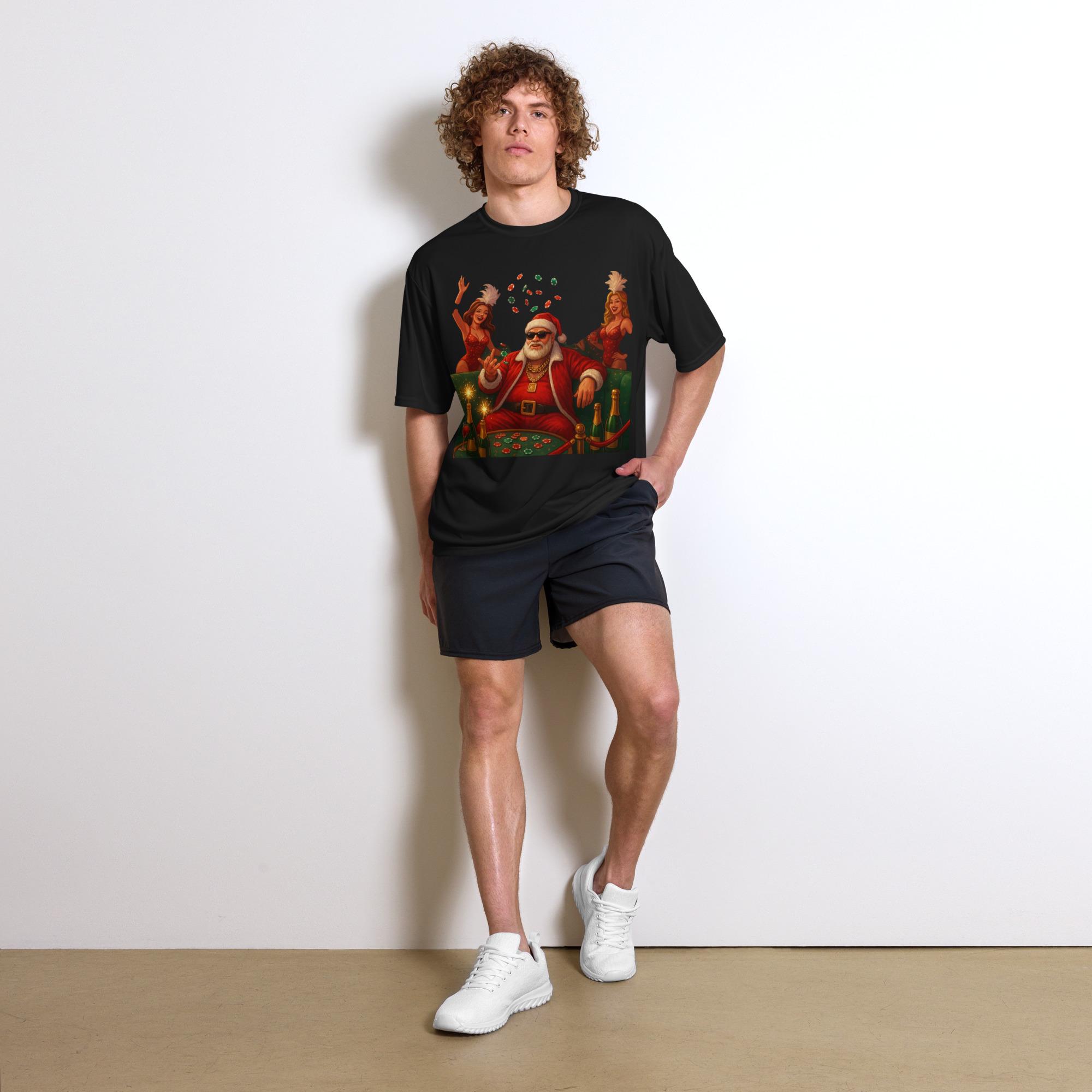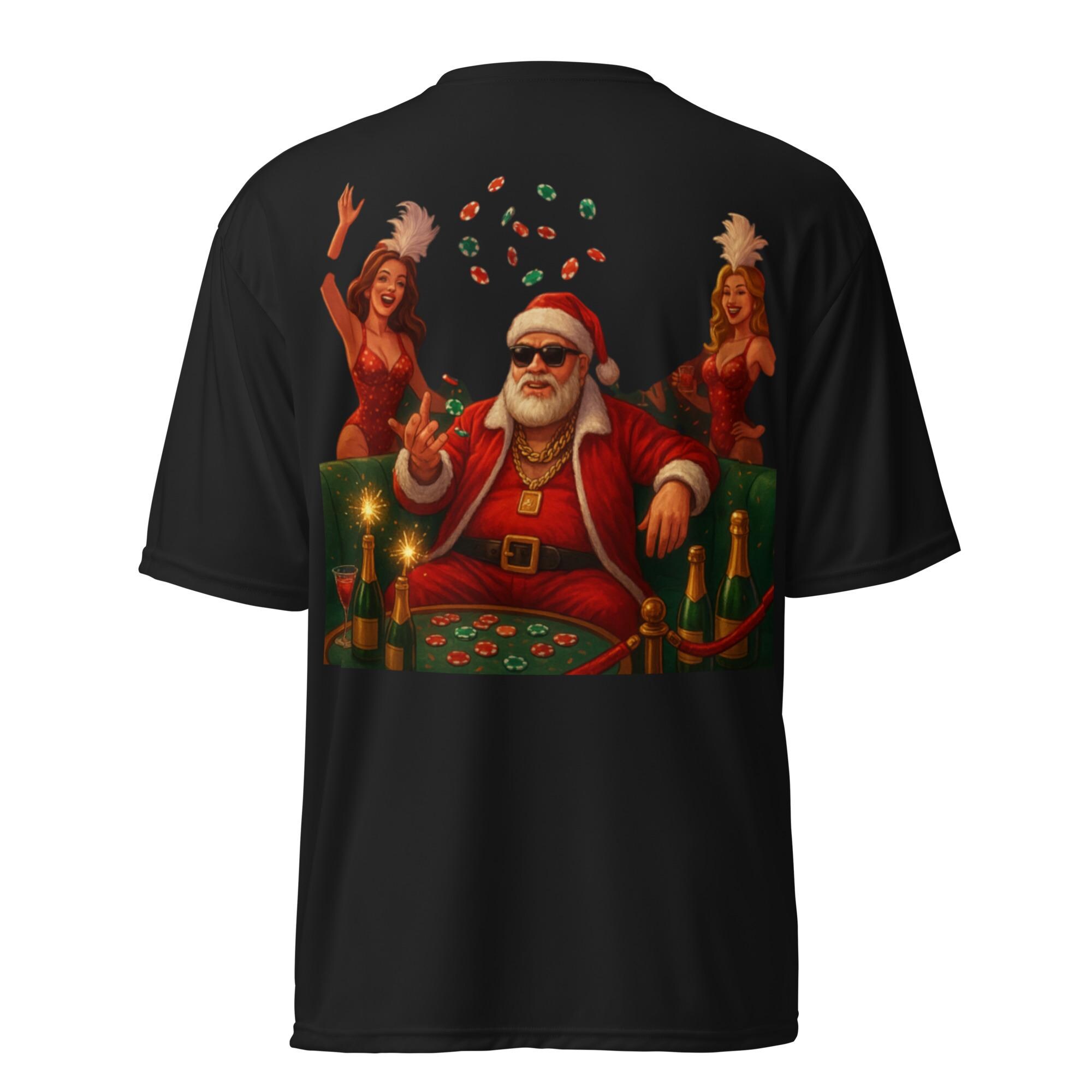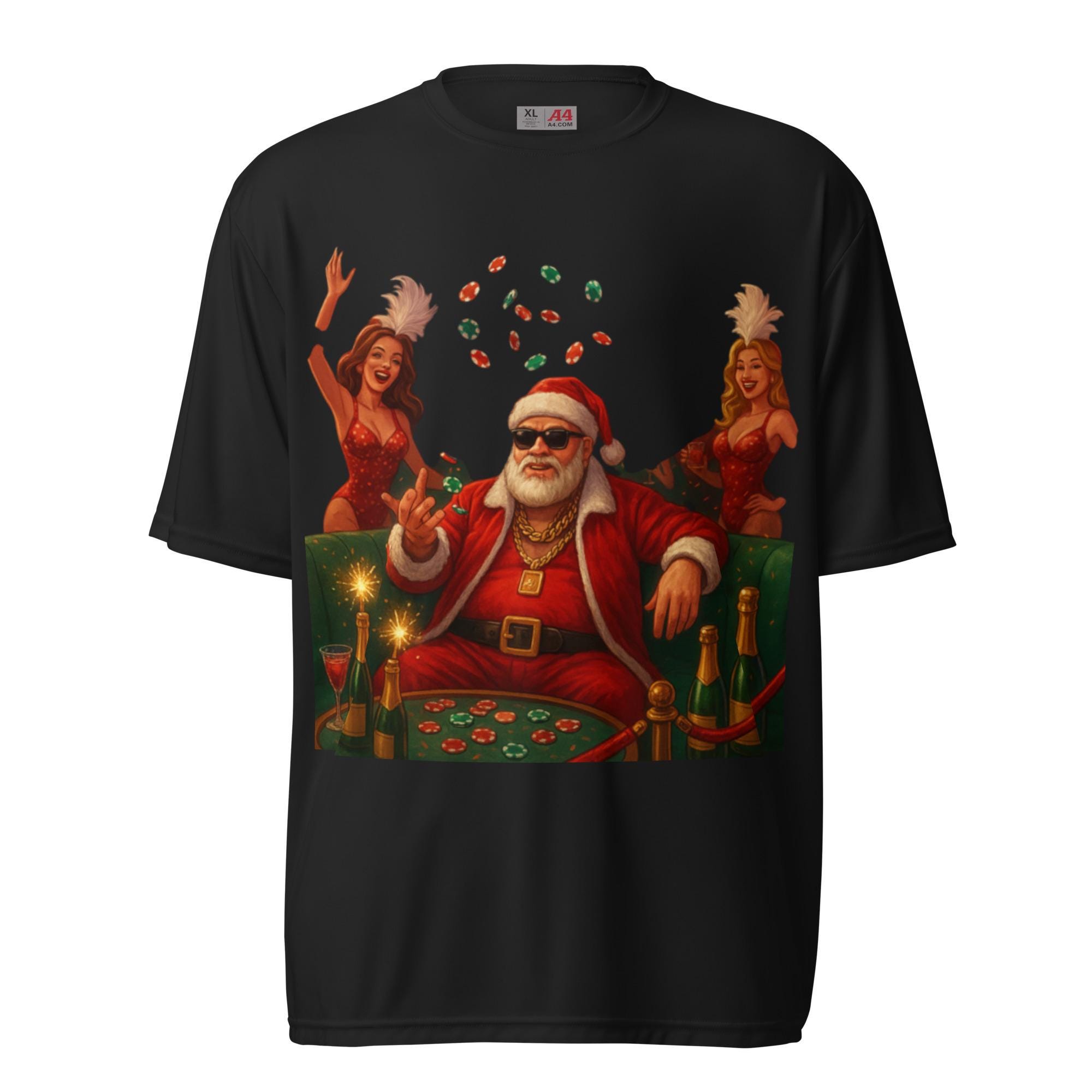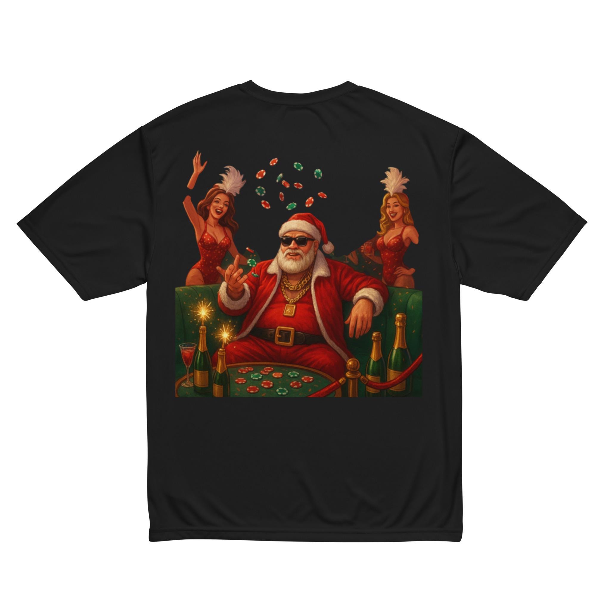 funny Christmas shirt, Casino Santa shirt, Poker Santa tee, adult humor Christmas shirt, high roller Santa design, Christmas casino shirt, funny holiday gift idea, Santa cigar shirt, Christmas poker t-shirt, Santa with sunglasses, Christmas humor tee, holiday party outfit, Santa in leather jacket, funny Xmas graphic tee