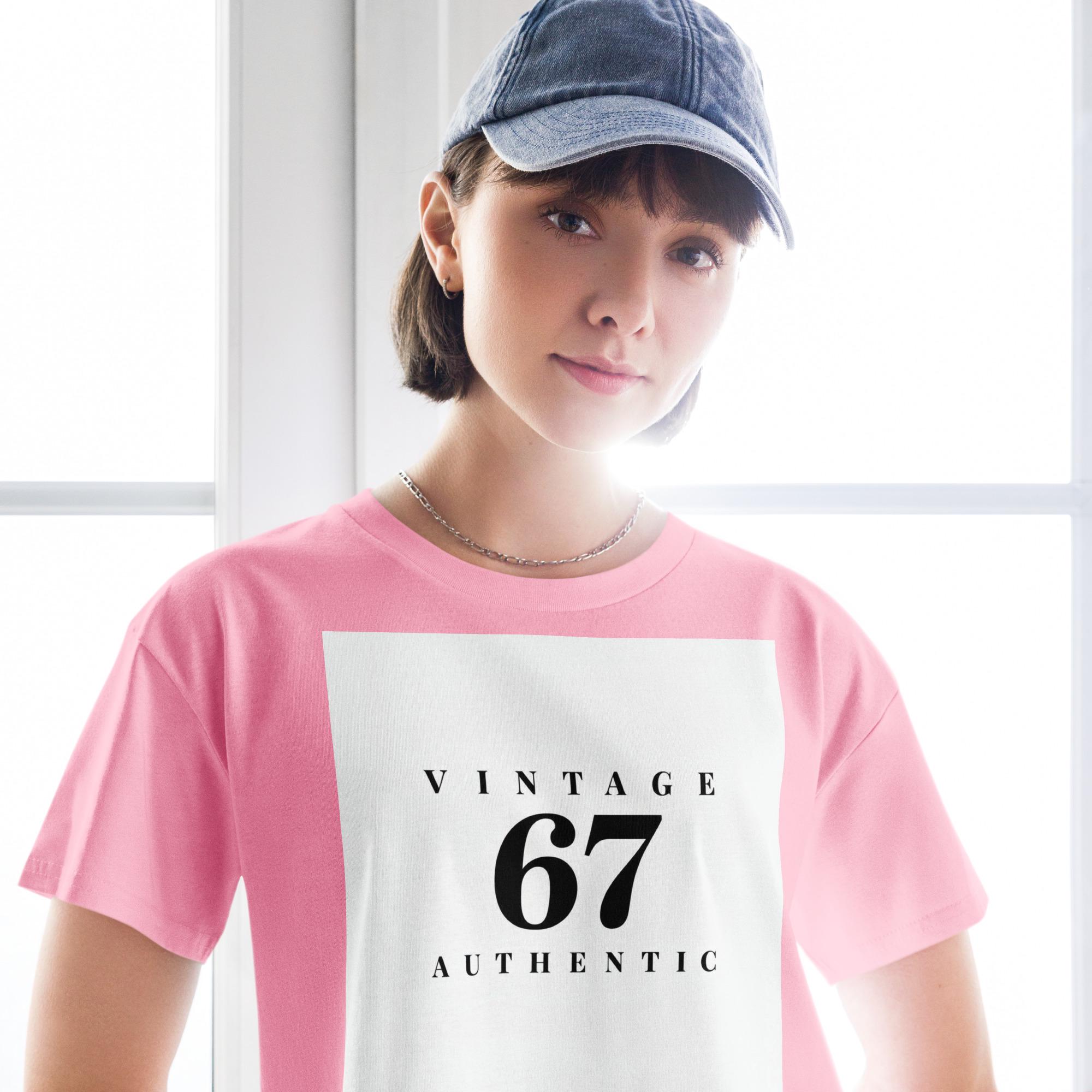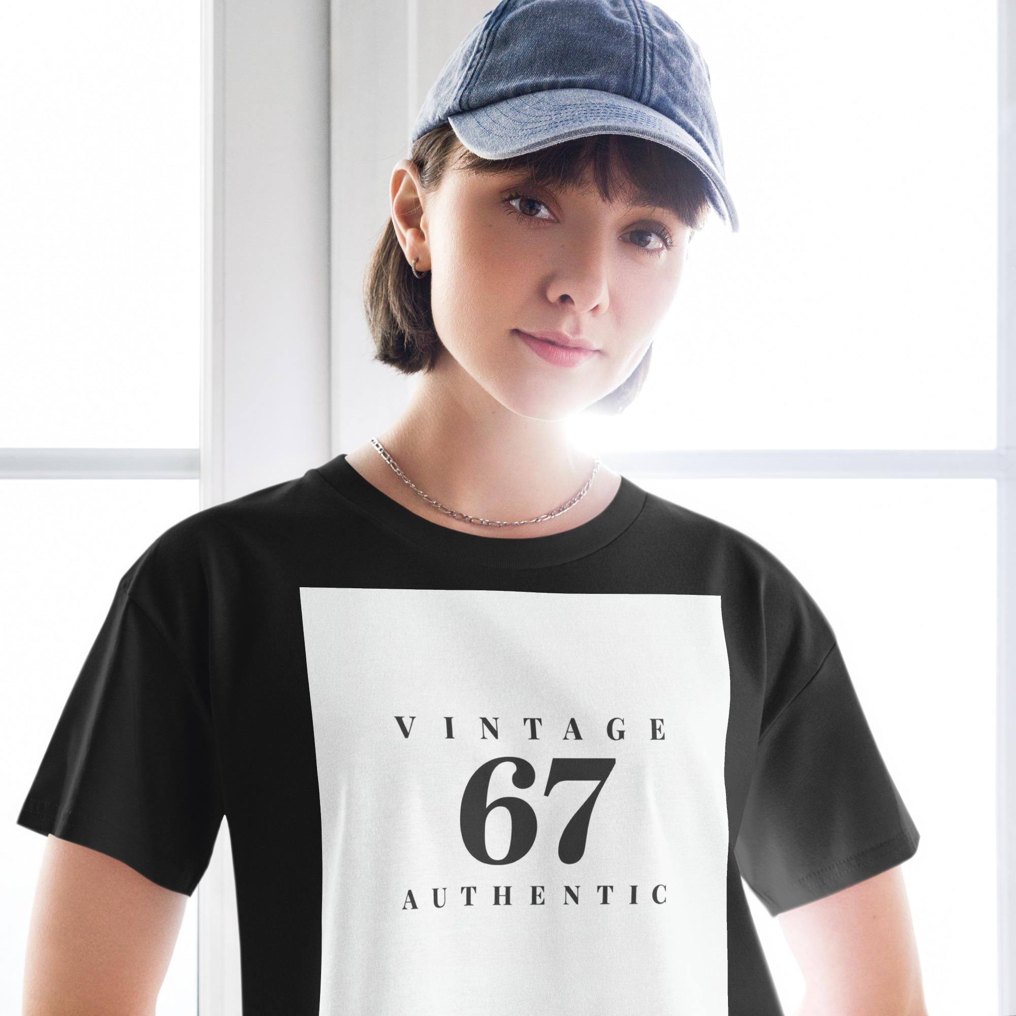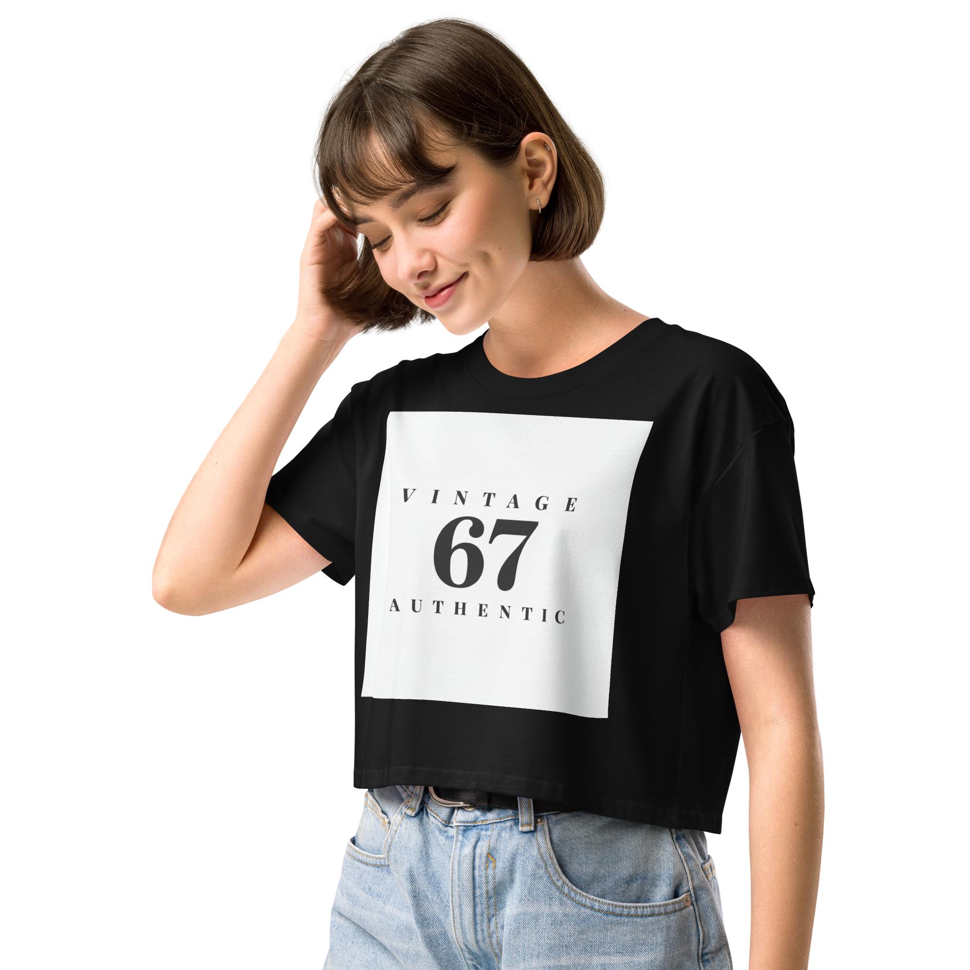 Celebrate your birth year with style — because being Vintage 67 means… you’re authentic! This classy black-and-white crop top keeps it simple, bold, and straight to the point: 67 and still legendary.