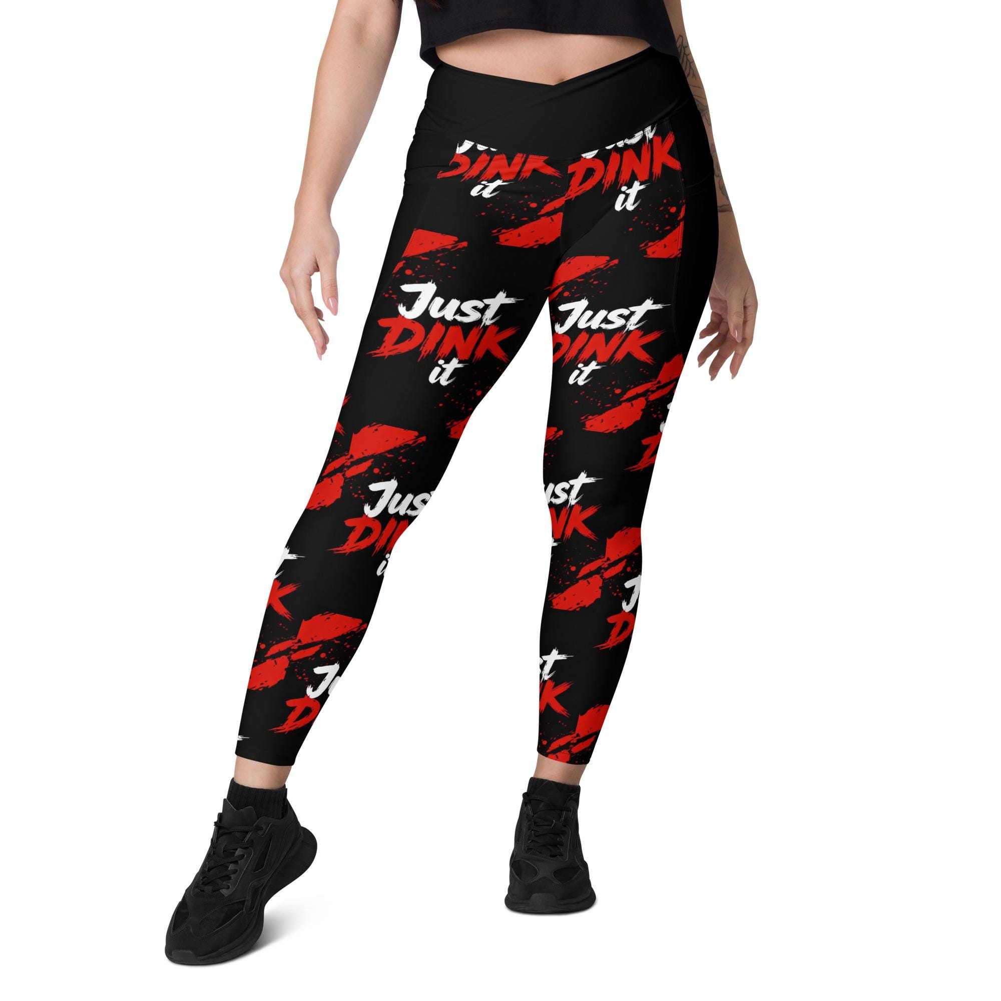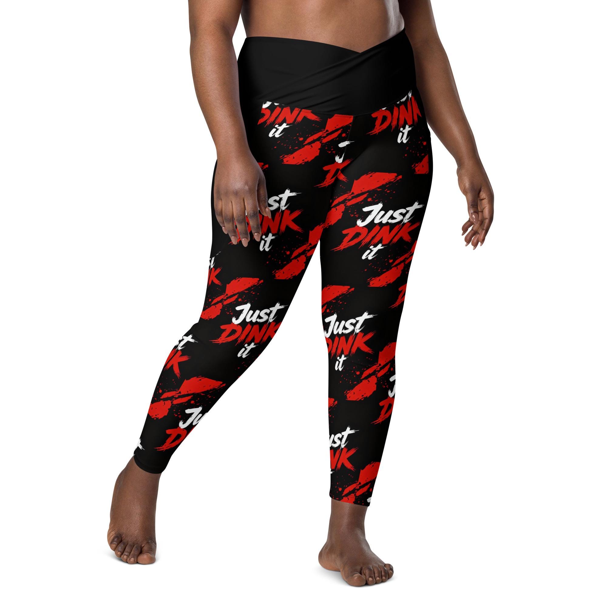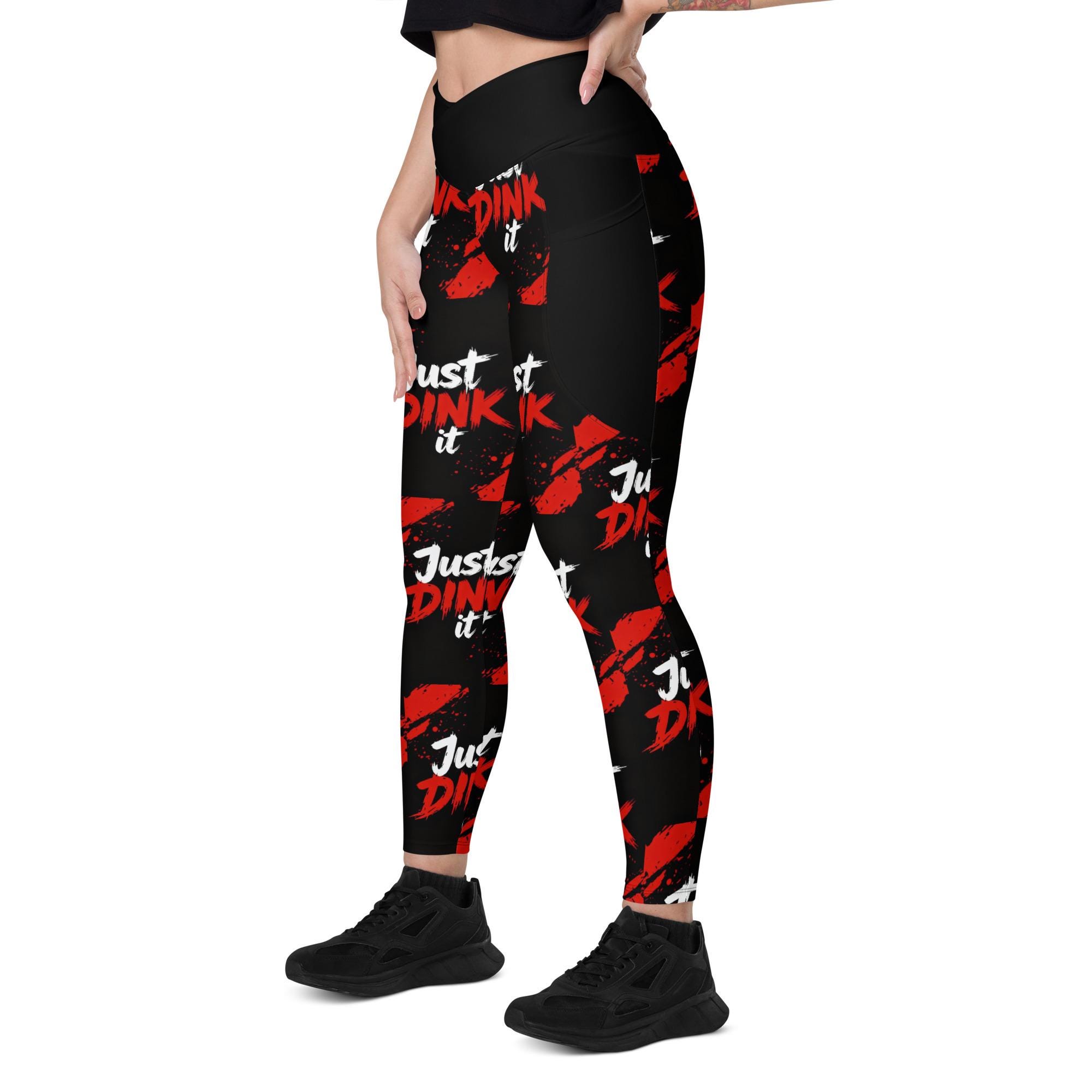 Bring bold energy to the court, gym, or studio with these Just Dink It crossover leggings with pockets, designed for women who love pickleball, yoga, and high-performance athleisure. Featuring an eye-catching red-and-black splatter design, these leggings are made to move, stretch, and stand out.