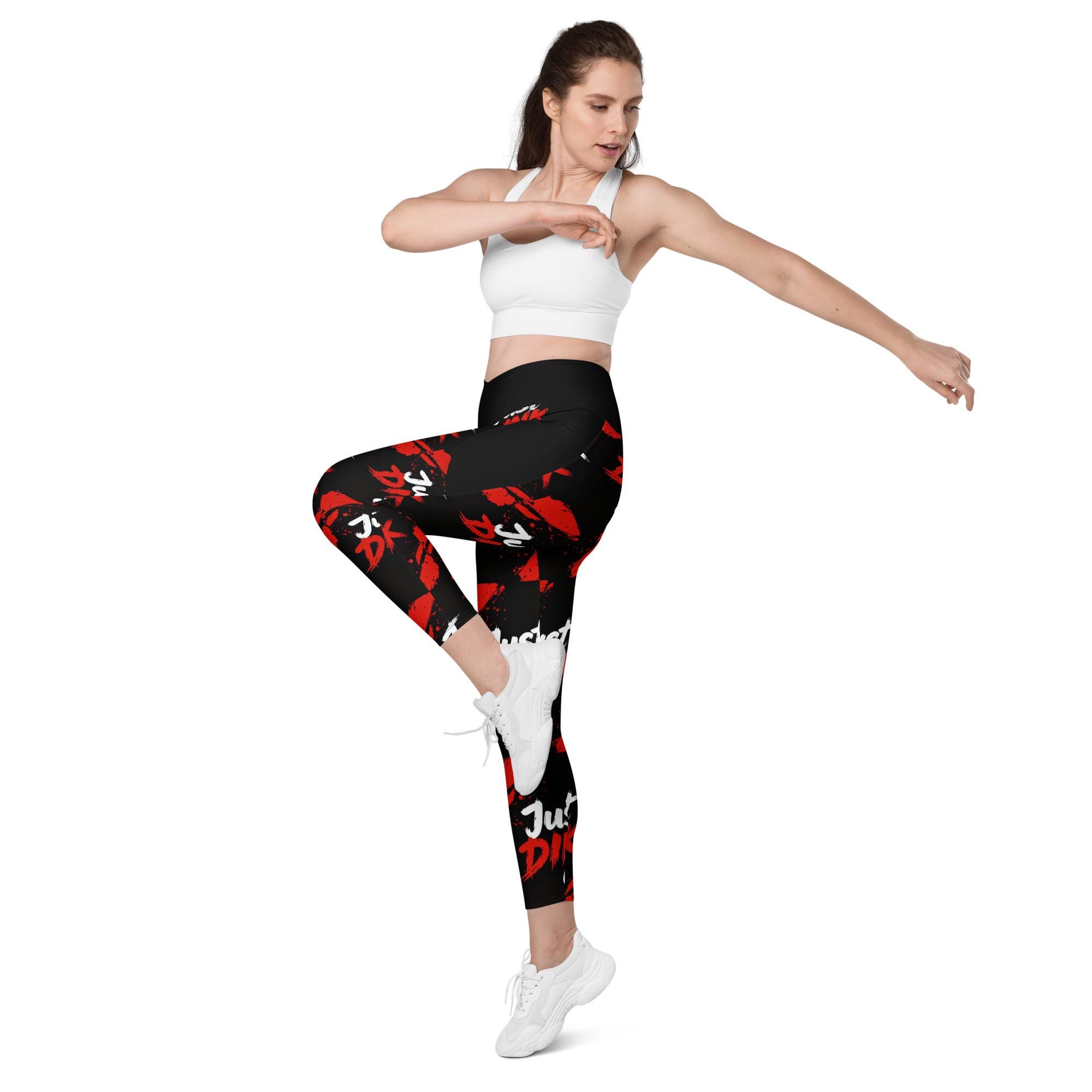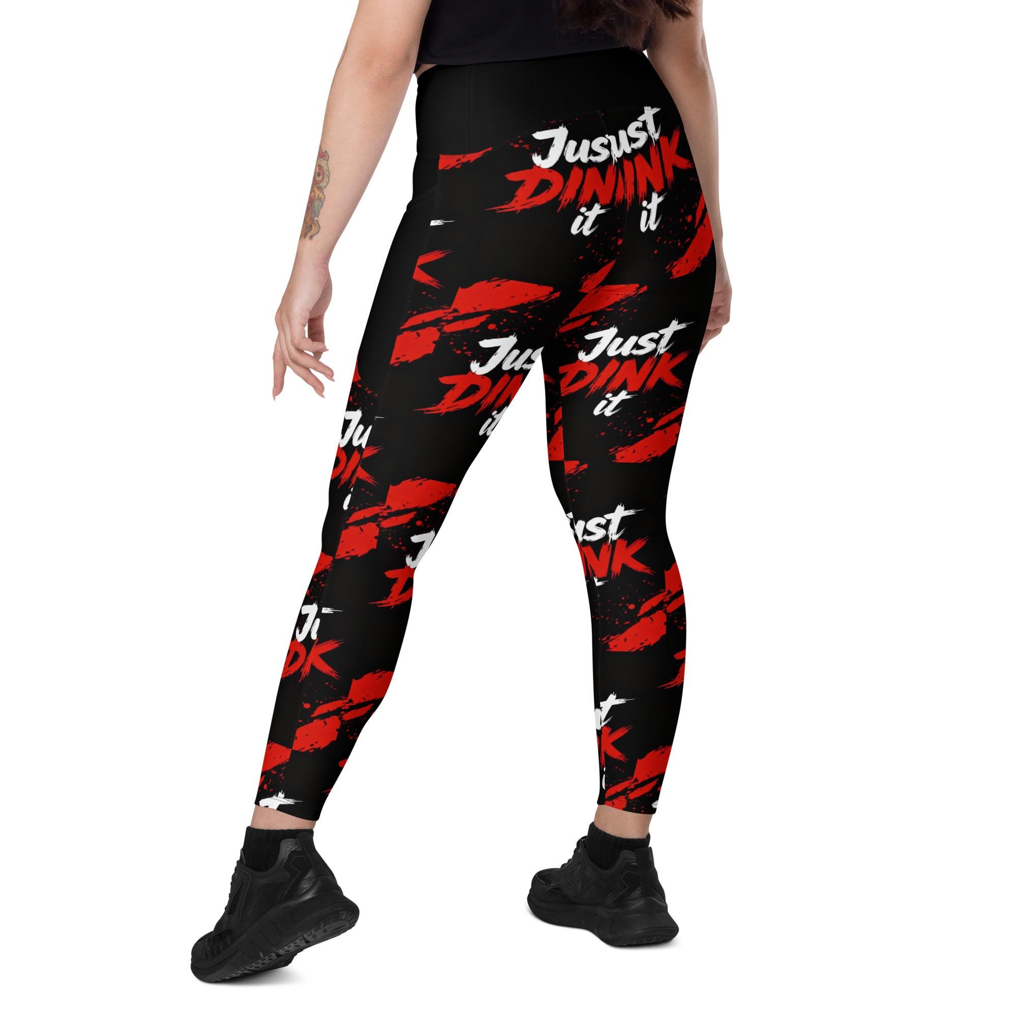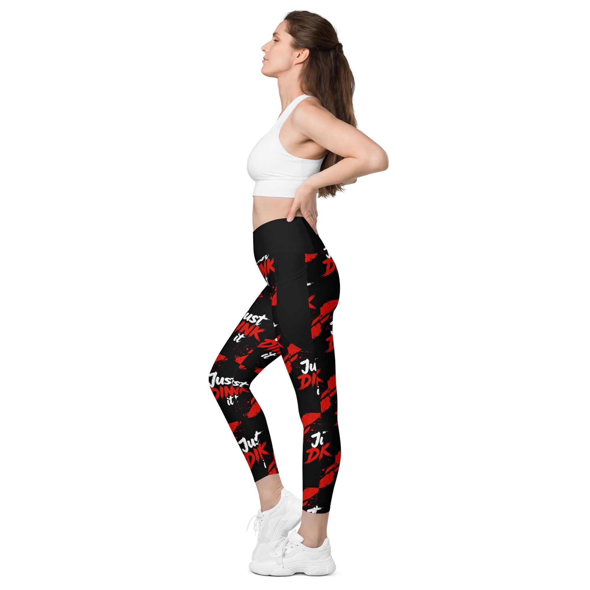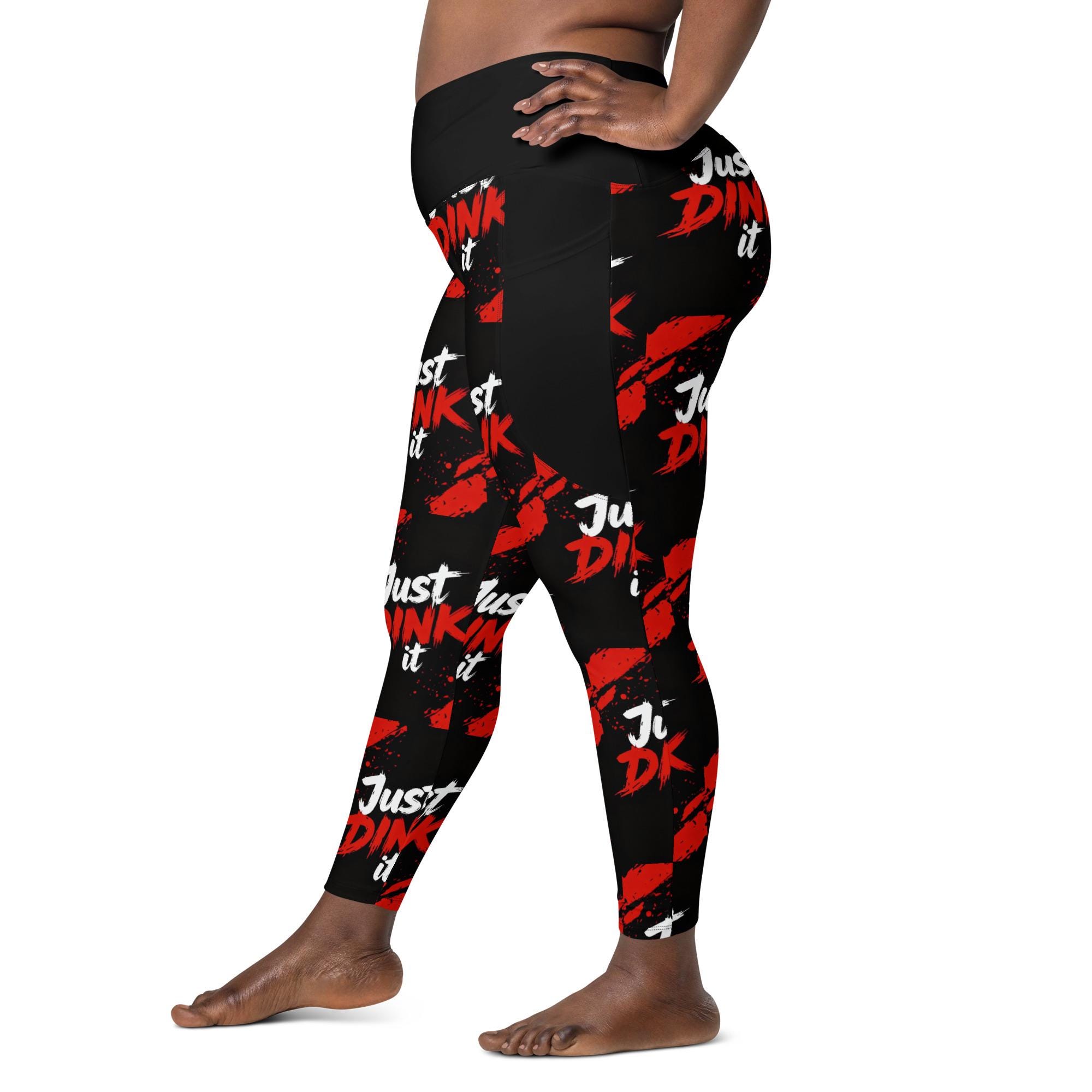 Bring bold energy to the court, gym, or studio with these Just Dink It crossover leggings with pockets, designed for women who love pickleball, yoga, and high-performance athleisure. Featuring an eye-catching red-and-black splatter design, these leggings are made to move, stretch, and stand out.