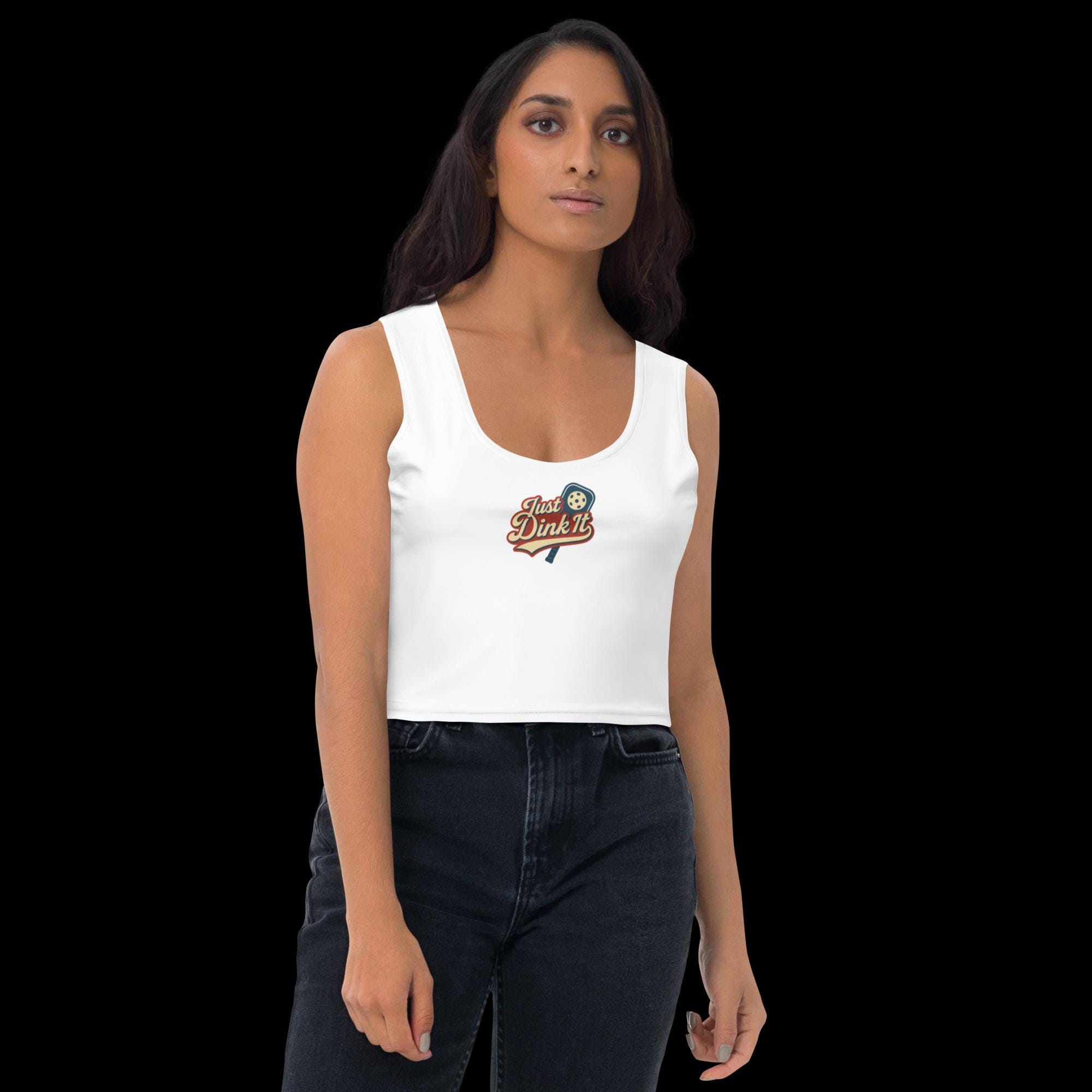 Featuring a sleek white base and a bold Just Dink It pickleball graphic, this crop top is ideal for pickleball matches, open play, practice sessions, gym workouts, yoga, or casual athleisure wear. The cropped athletic fit keeps it flattering and breathable while allowing full range of motion during fast-paced rallies and dinks at the net.