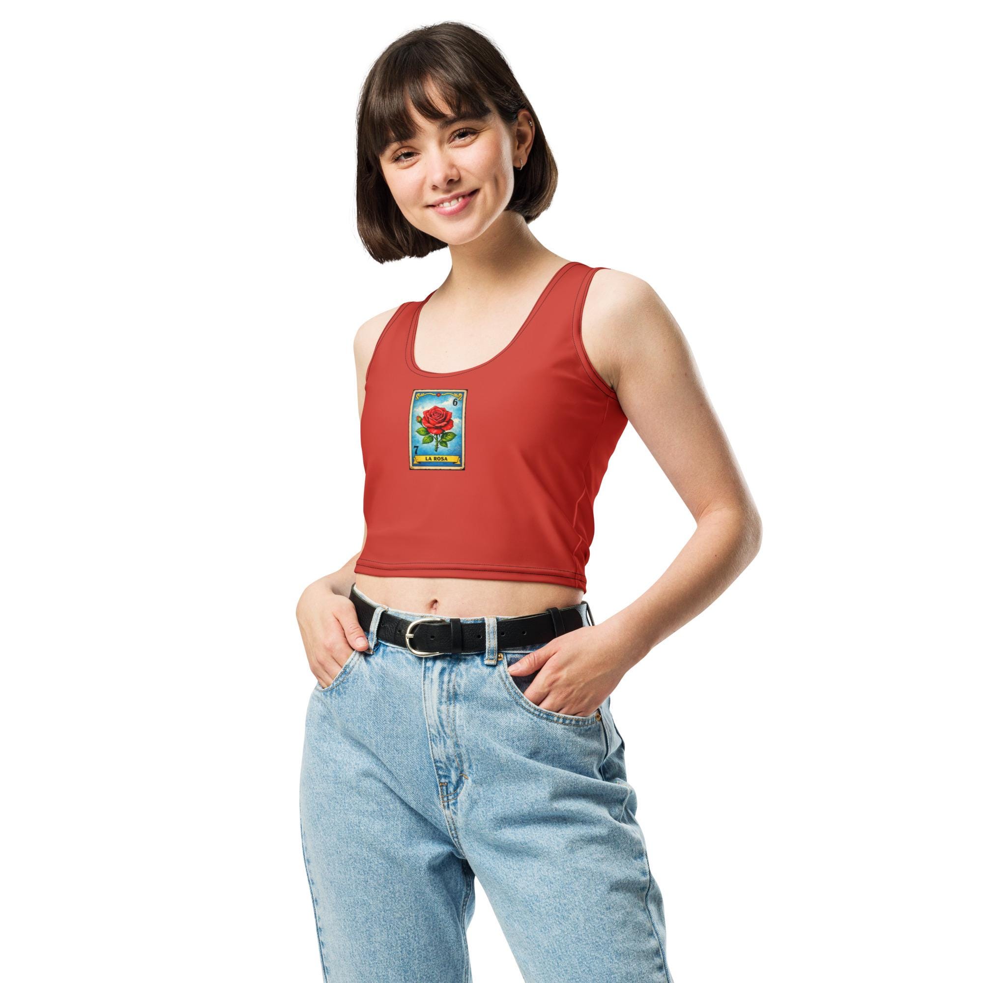 Rose crop top La Rosa crop tank Floral statement top Women’s crop top Athleisure crop top Bold graphic crop Streetwear crop tank Trendy women’s top Vintage rose aesthetic