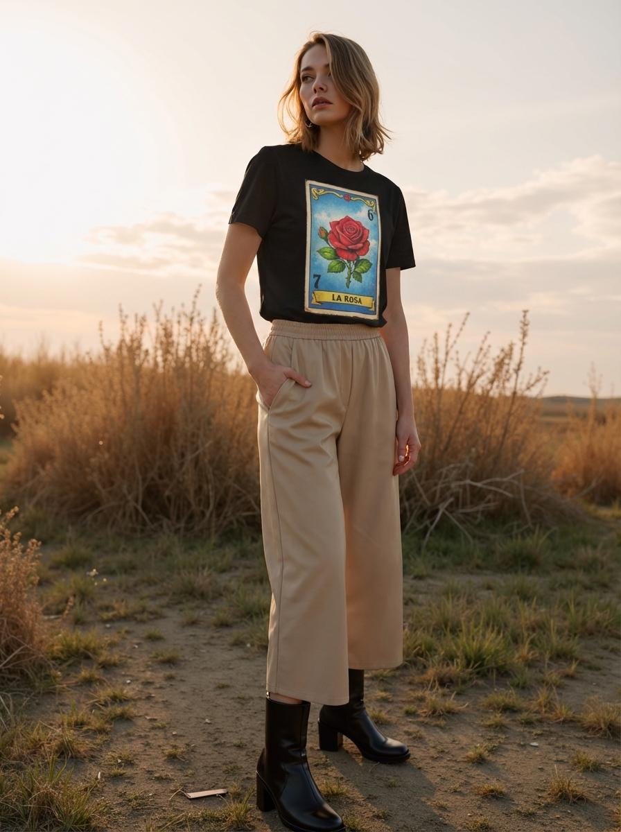 Wear this Loteria style shirt if you: ✔ Like art but hate explaining it ✔ Own plants you may or may not water ✔ Think roses are romantic and dramatic ✔ Want a shirt that works for brunch, concerts, or pretending you’re deep