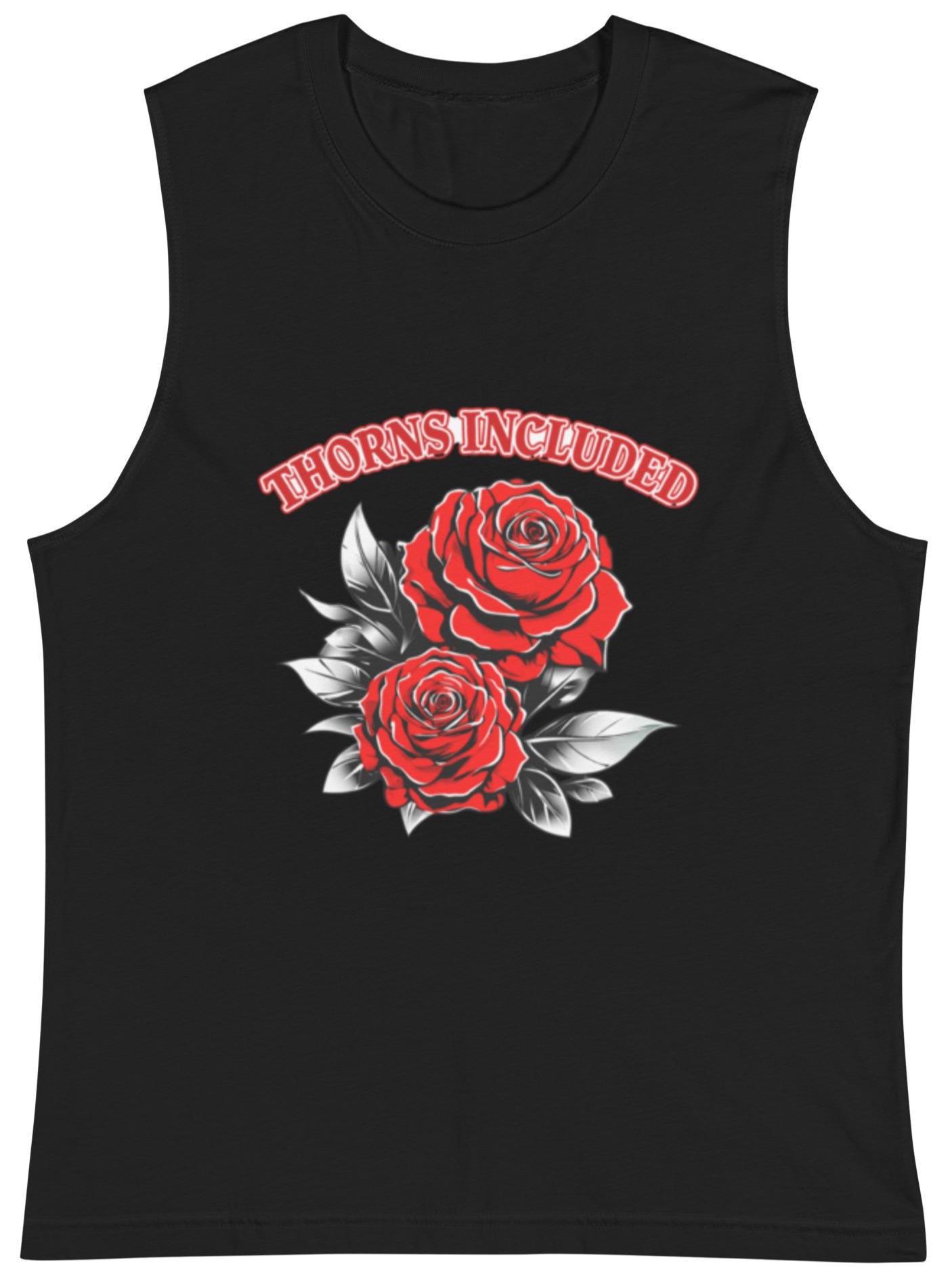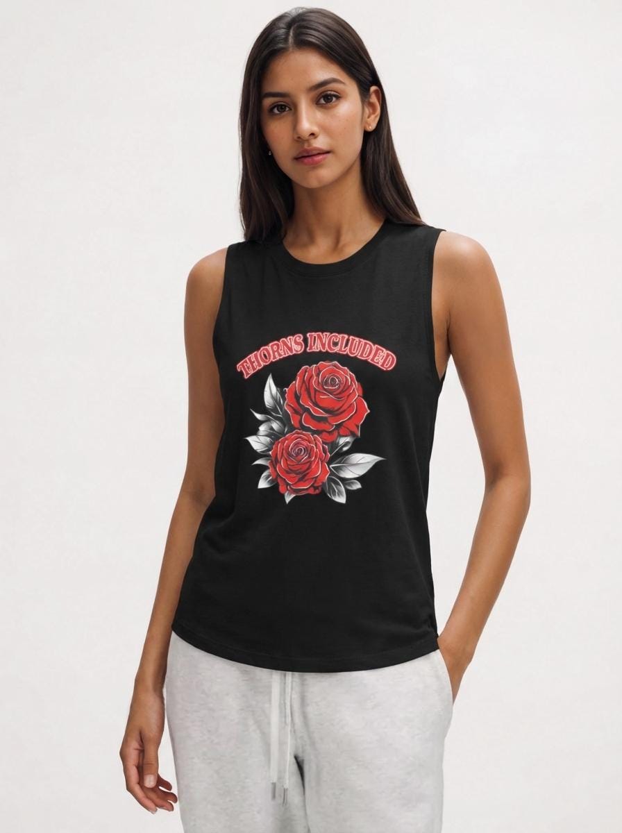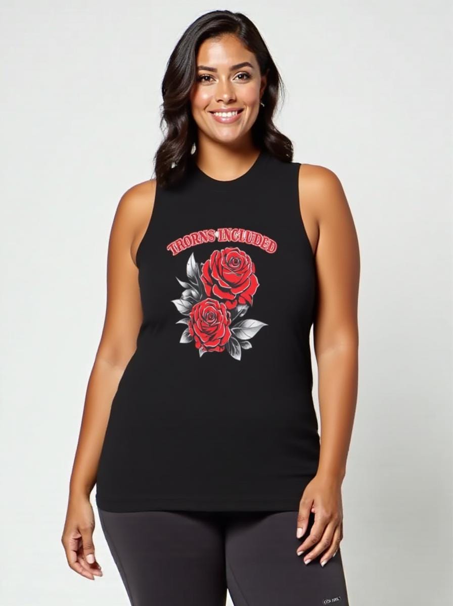 This women’s muscle workout shirt is for strong women who lift heavy, sweat confidently, and don’t need to explain their attitude. Featuring bold red roses with a “Thorns Included” statement, this rose graphic gym tank makes it very clear that you’re soft and savage.