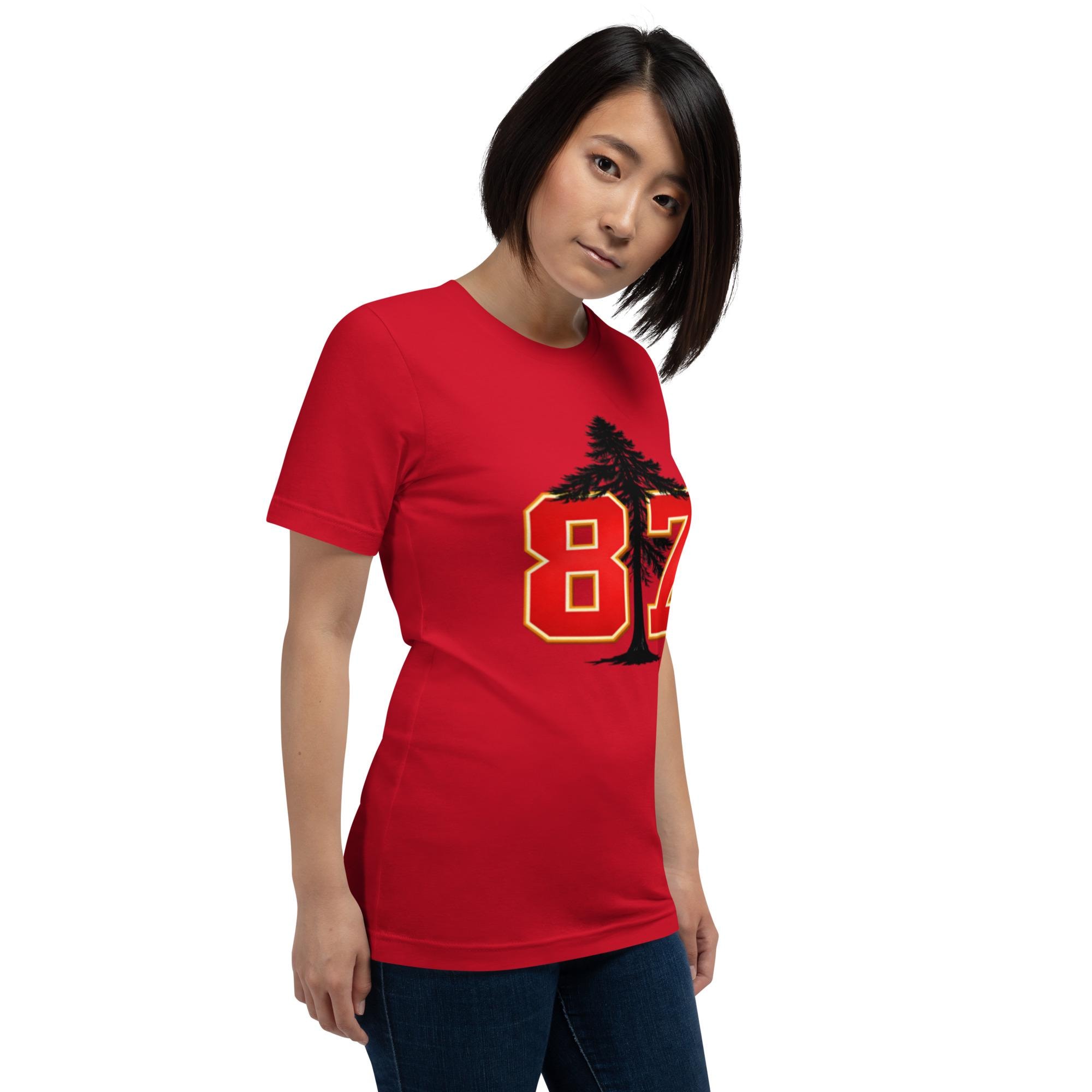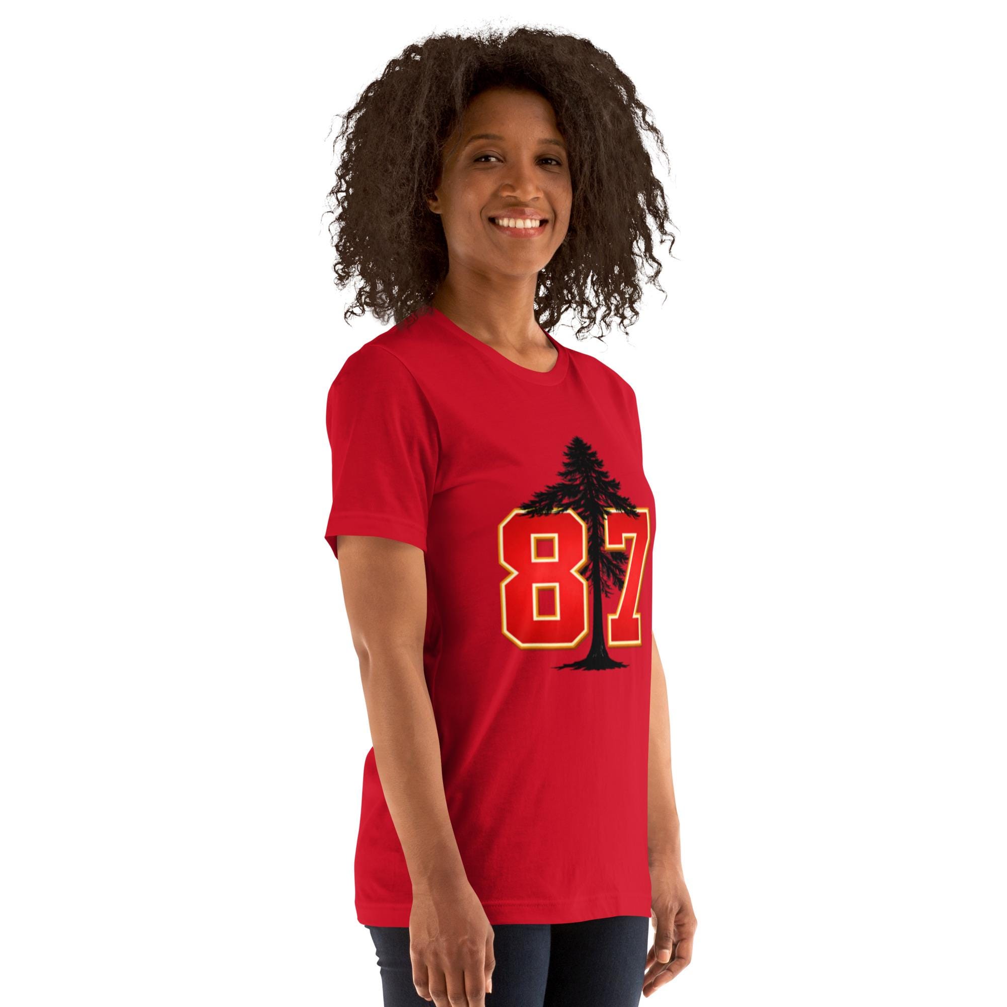This 87 Redwood Football Shirt is designed for fans who love the crossover moment — football meets pop culture — without the glitter, pastel, or “cute” aesthetic. Inspired by Travis Kelce’s iconic number 87 and the symbolism Swifties love, this design blends strength, roots, and timeless energy into one bold graphic.