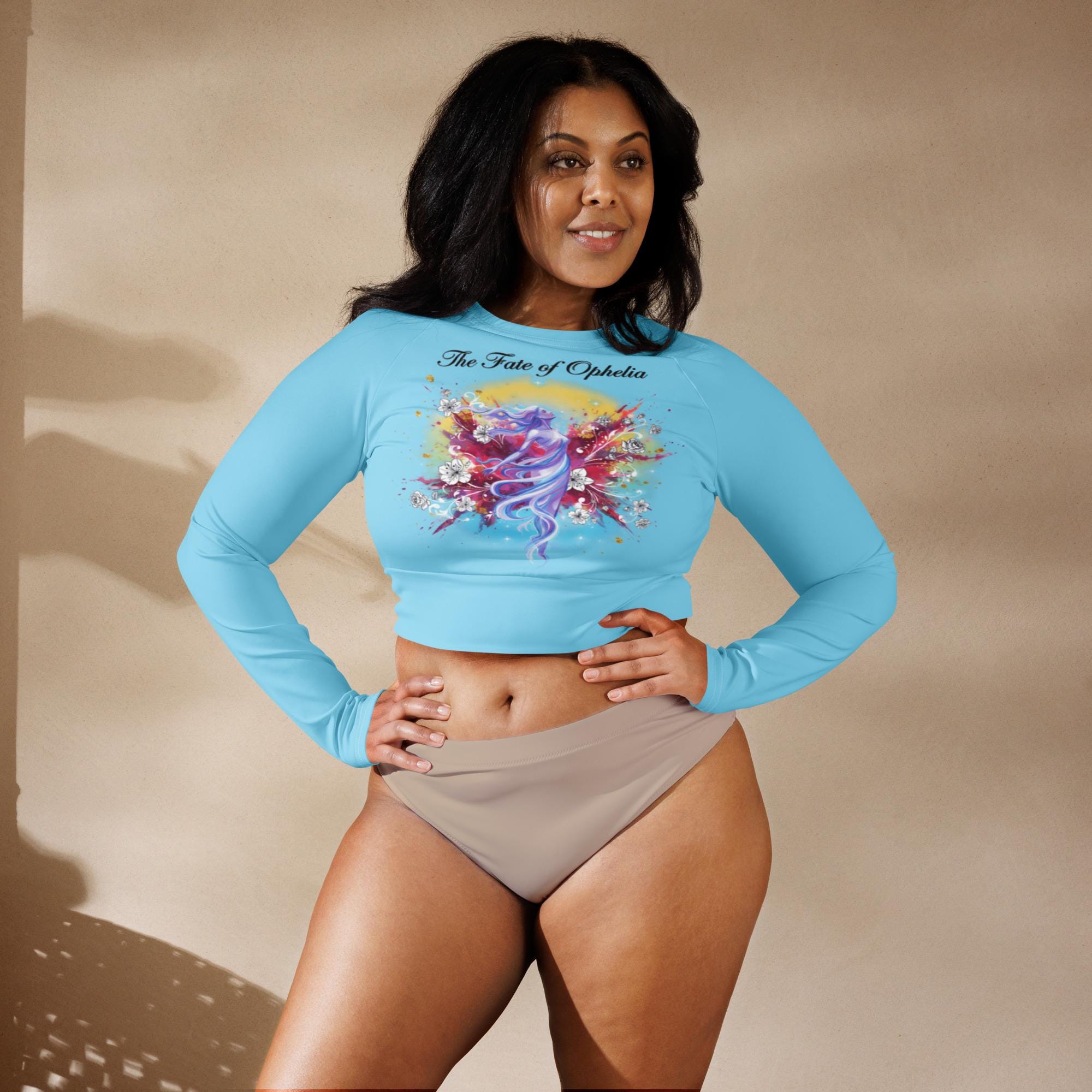 Key features: - Made from recycled polyester and elastane for eco-conscious wear - Long-sleeve crop top with a wide, double-layered waistband for comfort - Tear-away care label for easy wear and care - Eye-catching “The Tale of Ophelia” graphic inspired by Taylor’s eras - Perfect for concerts, lounge, sports, or athleisure outfits