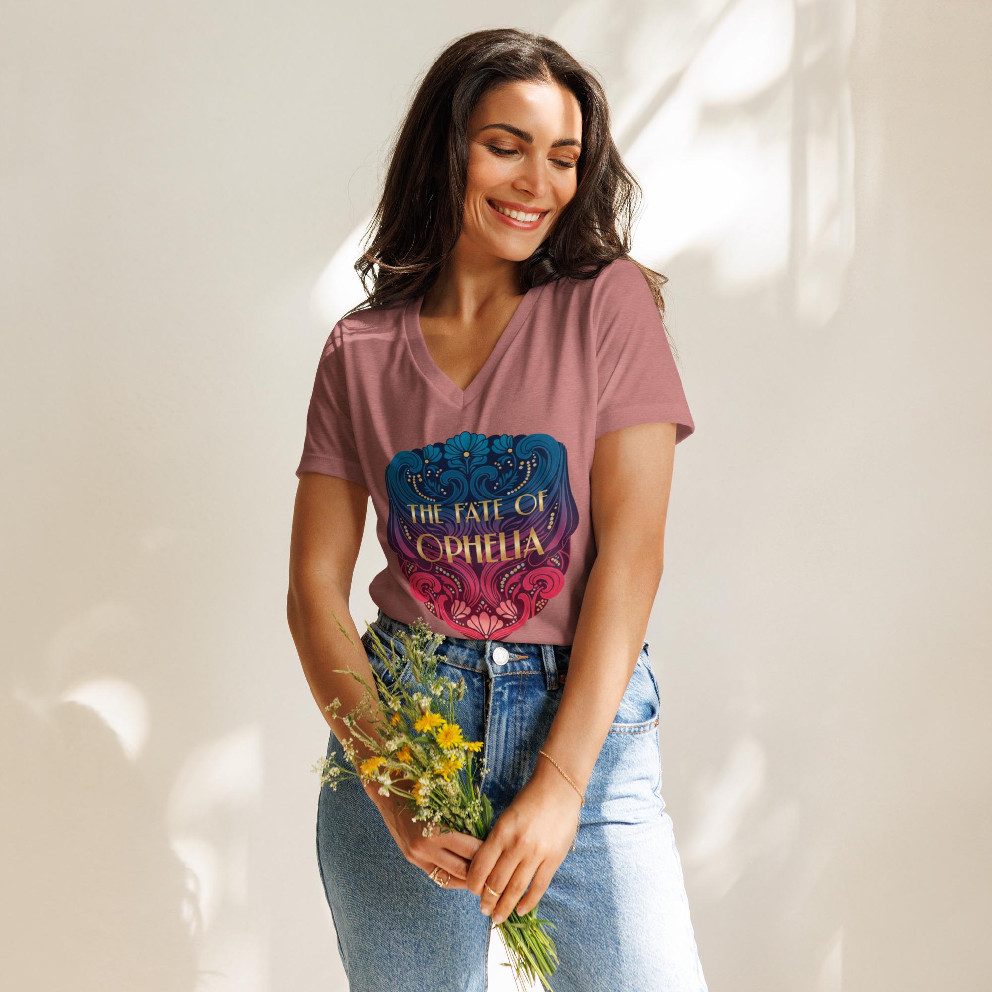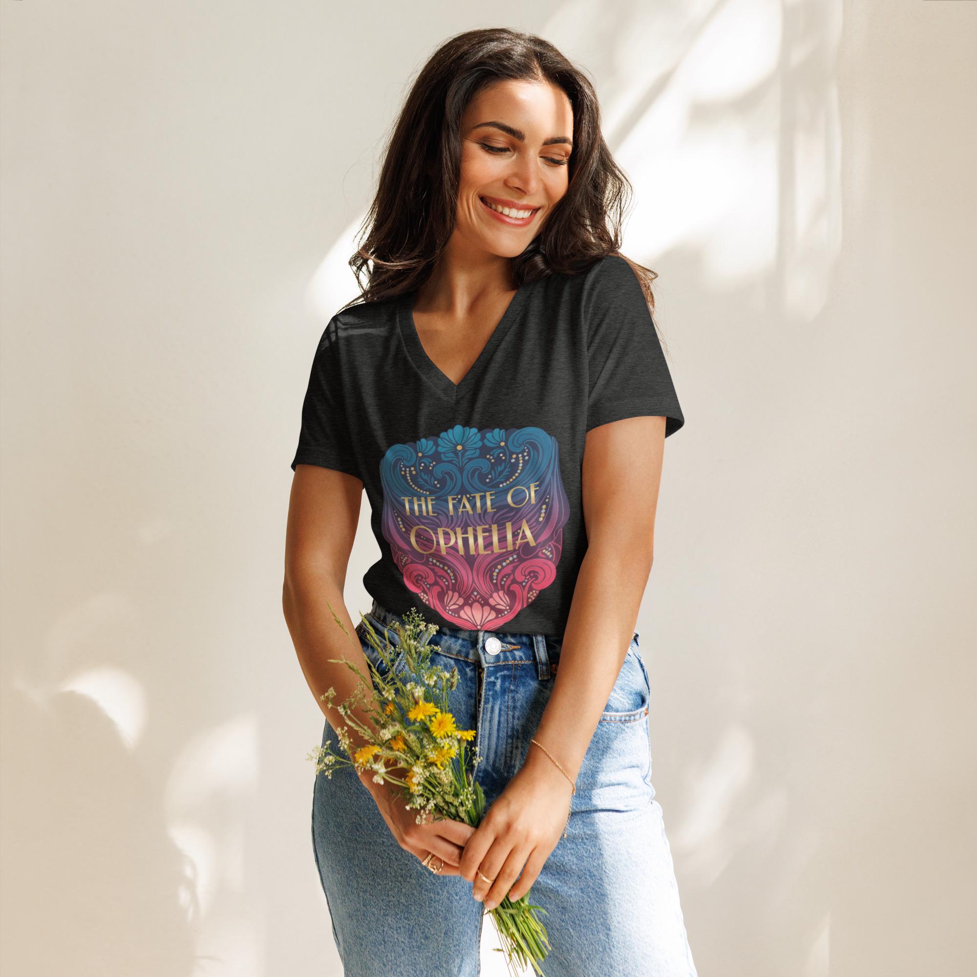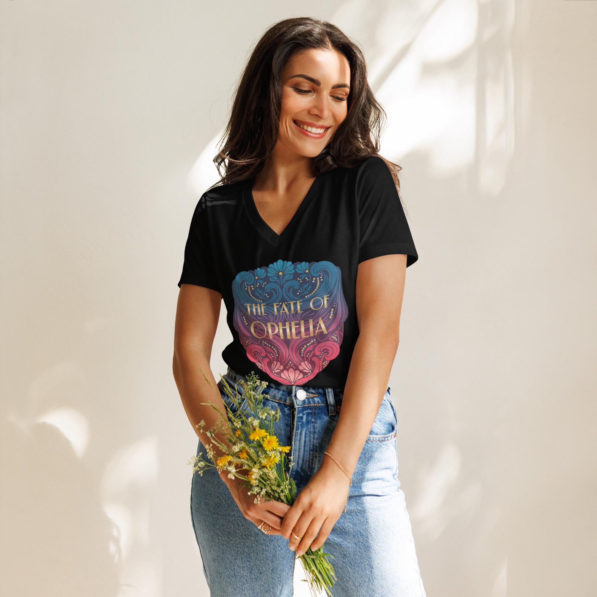 Embrace your inner main character with this Women’s V-Neck T-Shirt inspired by Taylor Swift’s Ophelia era. Perfect for Swifties who love storytelling, symbolism, and capturing the essence of eras, this tee combines romantic visuals with feminine strength for a truly standout look. Whether you're heading to a concert, lounging in style, or creating the perfect fan outfit, this shirt is your ideal choice.