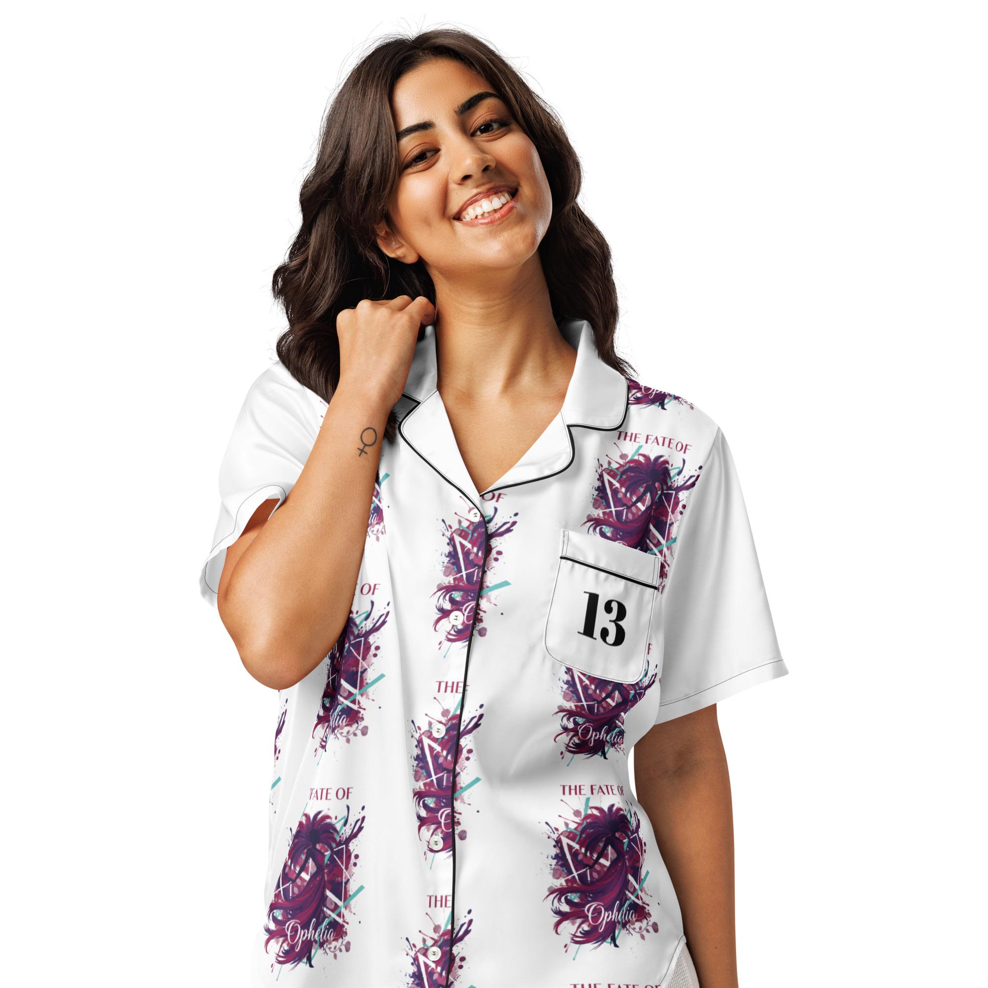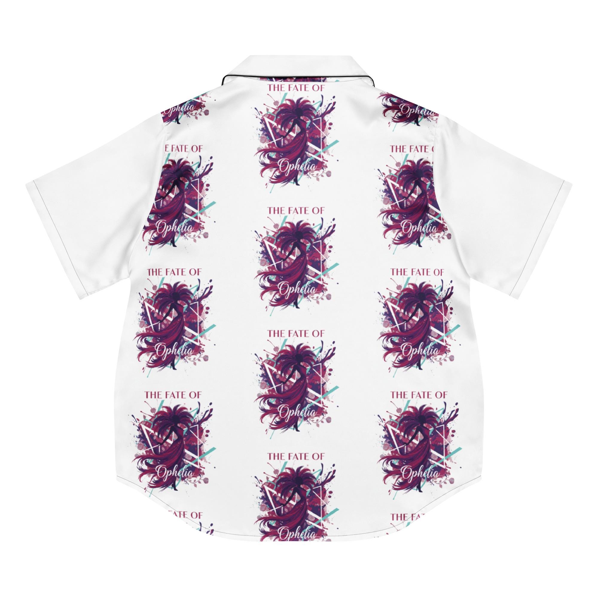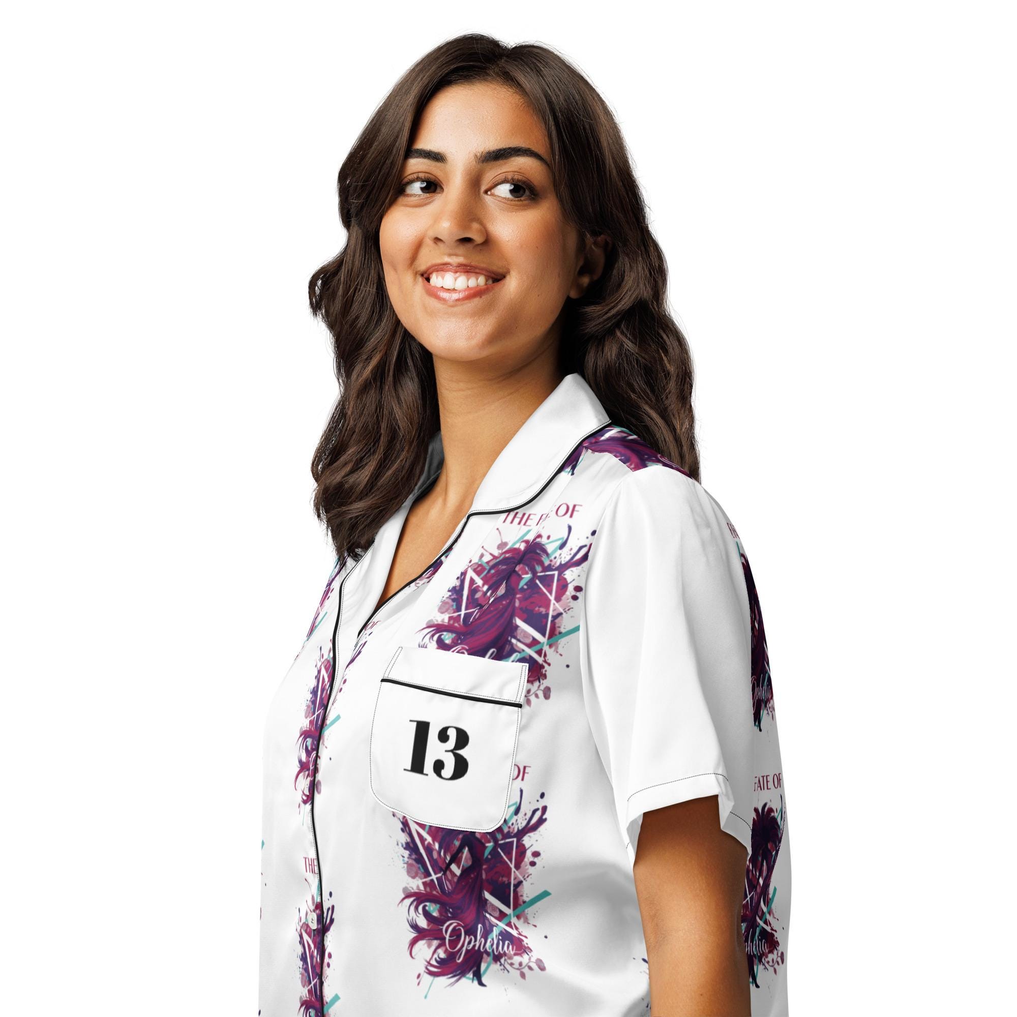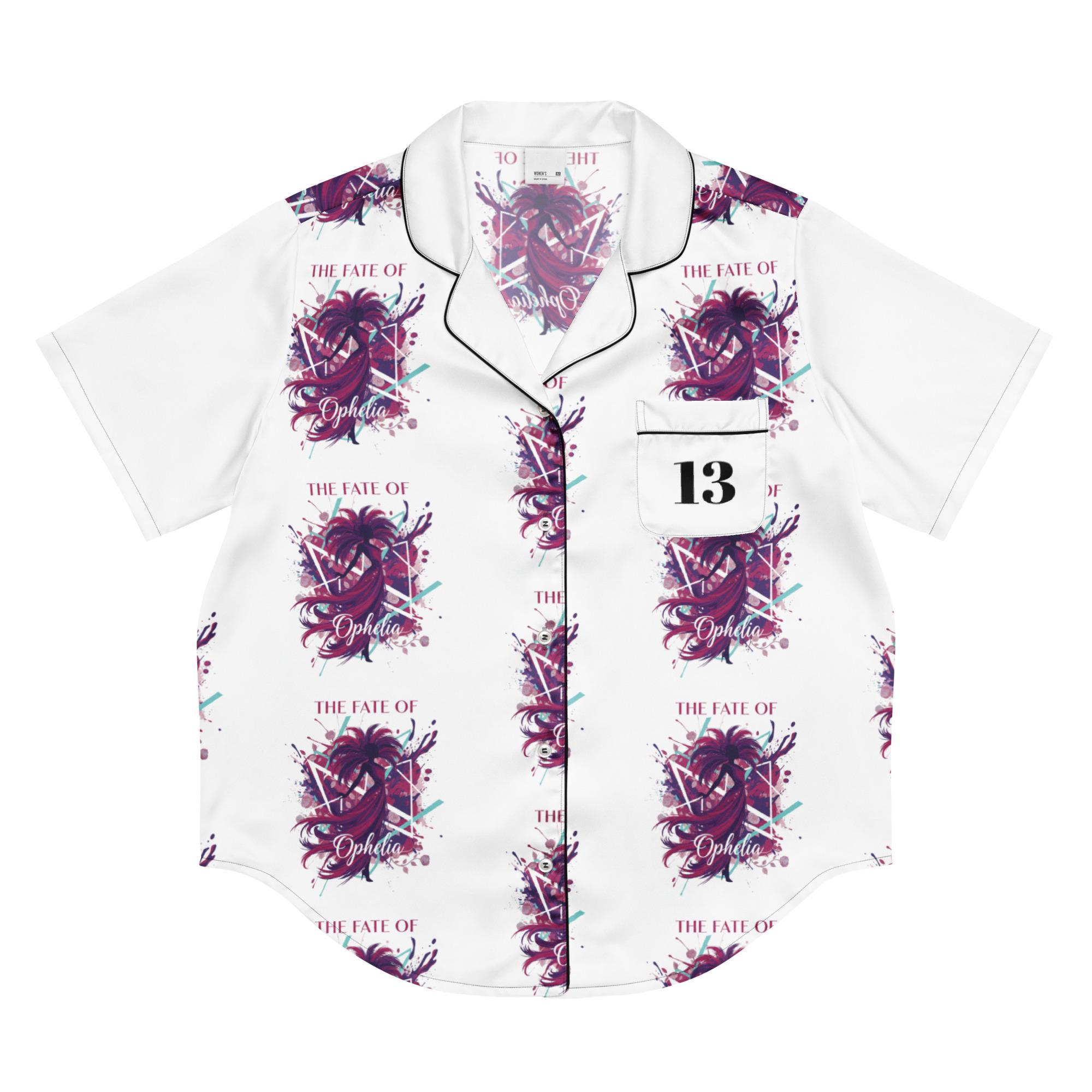 Key features include: - Soft, satin material with vibrant all-over print inspired by Taylor’s signature eras - Relaxed fit with a classic collar and button-up front for easy wear - Feminine, romantic visuals that evoke the poetic essence of Ophelia and other Taylor eras - Perfect for sleepwear, lounging, or concert-ready style