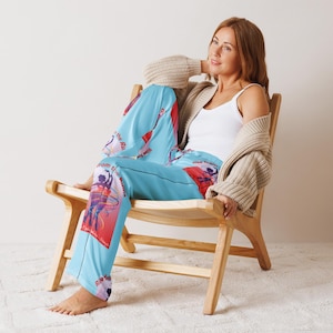 Made from a luxurious, silky material, these pajama pants offer a relaxed fit that feels as good as it looks. The vibrant red fabric features beautiful floral and symbolic details reminiscent of the Swiftie Era aesthetic, making them a standout addition to your wardrobe. Pair them with a matching tank top or crop top for a coordinated look, or mix and match with your favorite cozy items for versatile styling.