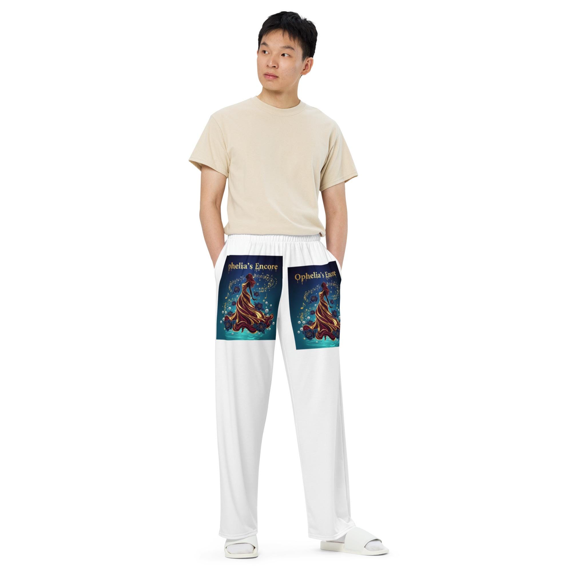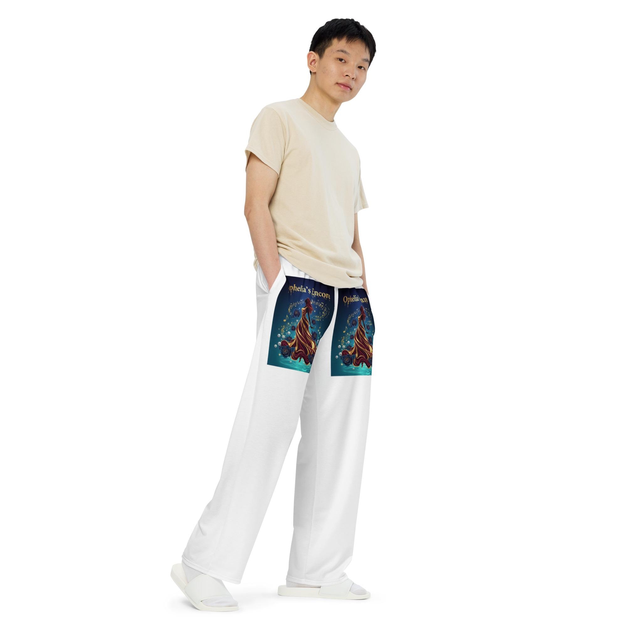 Experience the perfect blend of comfort and style with these all-over print unisex wide-leg pants inspired by the Ophelia Era and Taylor Swift’s iconic storytelling. Designed for passionate Swifties, these pants capture the romantic and empowering energy of your favorite era with vibrant, artistic visuals that make a statement wherever you go. Whether you're lounging at home, heading to a concert, or embracing your inner main character, these wide-leg pants are your new go-to for effortless, fashionable comfort.